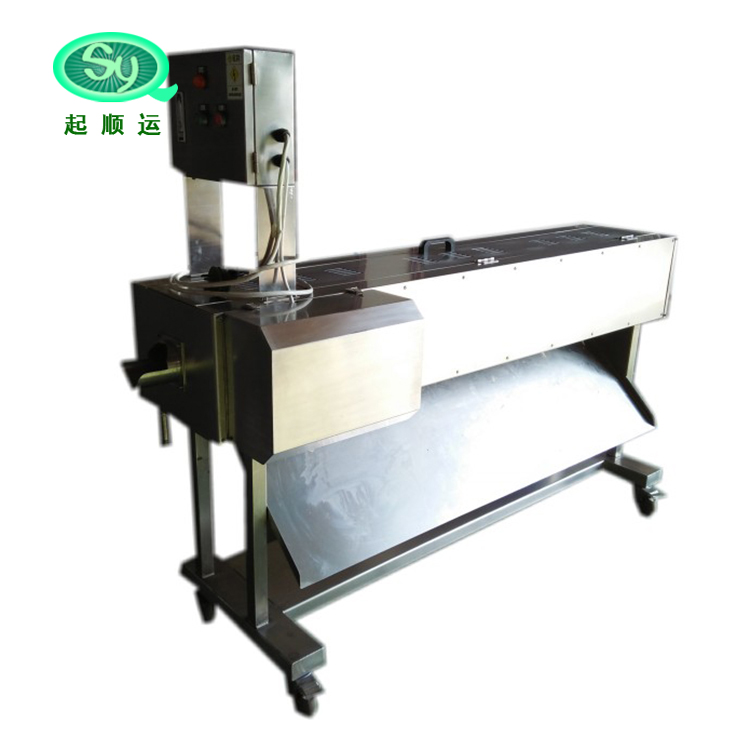 山药去皮机设备构造:主要由机架、切刀组合、送料机构、及控制箱四大部分组成。设备特点:操作简单,使用方便;自动化程度高可连续作业。工作原理:设备启动后将白萝卜从入料口处投入,通过送料机构自动带动山药向前移动的同时经过切刀组合进行去皮加工。主要技术参数:型号:QSY-SQP2000 产能:600KG/h 功率:0.75KW 尺寸:2530x650x1560(mm)